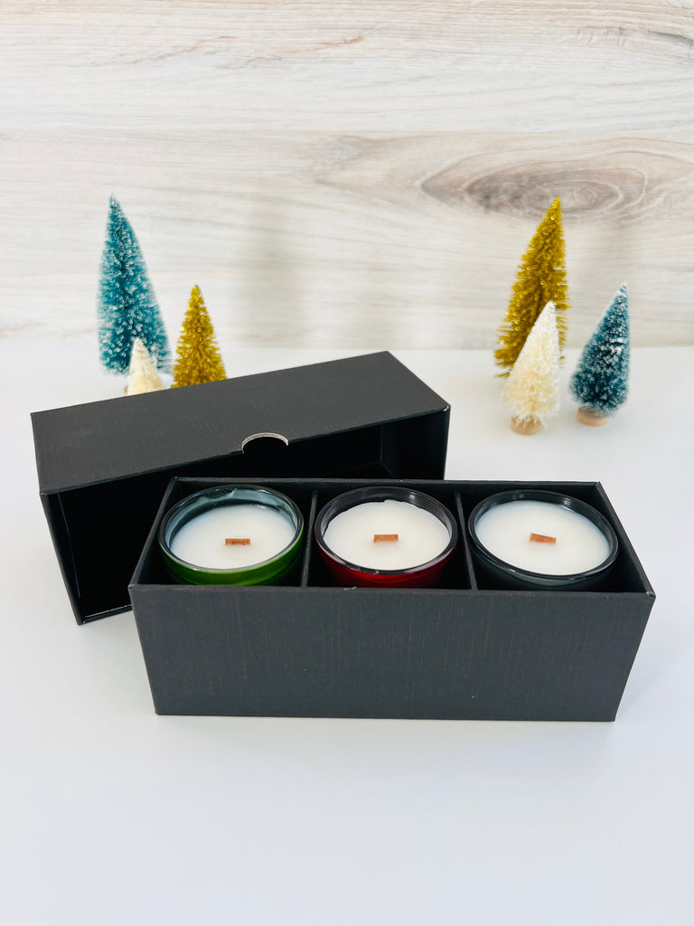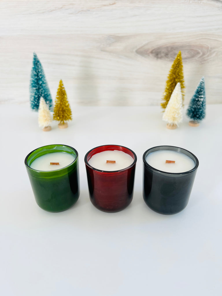 Simple, chic, and classically beautiful, these vessels never go out of style. This limited edition Holiday Collection contains a trio of fan-favorite holiday fragrances in a new adorable, petite 2.5 oz. vessel. They come packaged in a fancy "gift-ready" black linen box. Burn time is up to 15 hours. Pair this petite size with our 12 oz. vessels to create a cohesive collection!